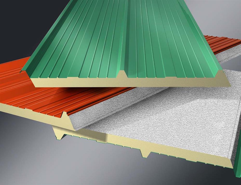 La base dei pannelli è in lamiera grecata, la coibentazione è costituita da schiuma espansa rigida in poliuretano.